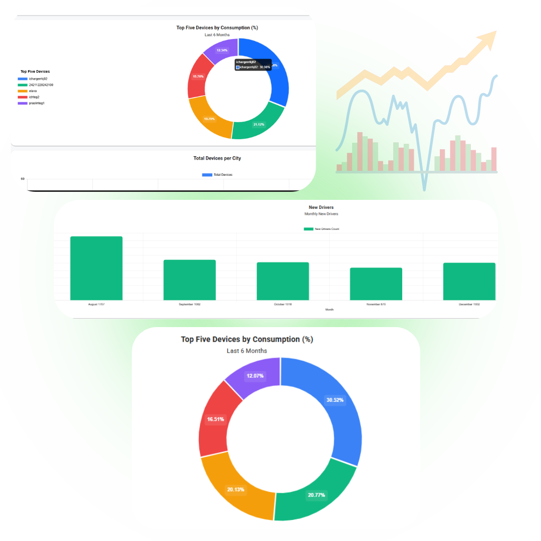 iCharge offers detailed insights into station usage, energy consumption, and uptime, helping businesses identify high-demand locations, underperforming stations, and expansion opportunities.